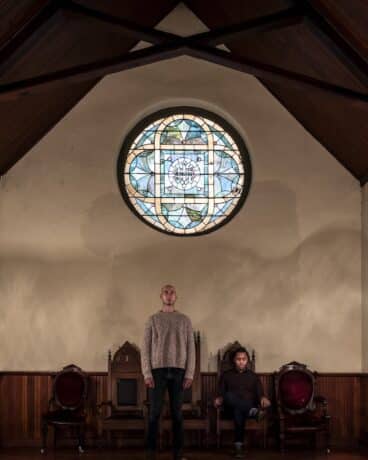 L'histoire – qui n'est pas tant une intrigue qu'une cavalcade de langage poétique – est donnée par deux acteurs intensément viscéraux jouant des personnages pour la première fois par Mary Shelley: JC Payne en tant que scientifique Victor Frankenstein et Jon Beal comme créature. Leur physique et leur force vocale de près sont remarquables. Mary Shelley elle-même semble représentée avec un calme impénétrable de Katrina Clark. À l'intérieur de la chapelle, avec son acoustique étrange (en éruption épisodique dans les tonnerre de Thunderclaps du concepteur de son Kenny Neal), le réalisateur Alex Levy a conçu une production théâtrale obsédante en utilisant uniquement l'entrée, la nef et le channelle de la chapelle existante: les moins d'effets d'éclairage: les candélabres et les cordons.