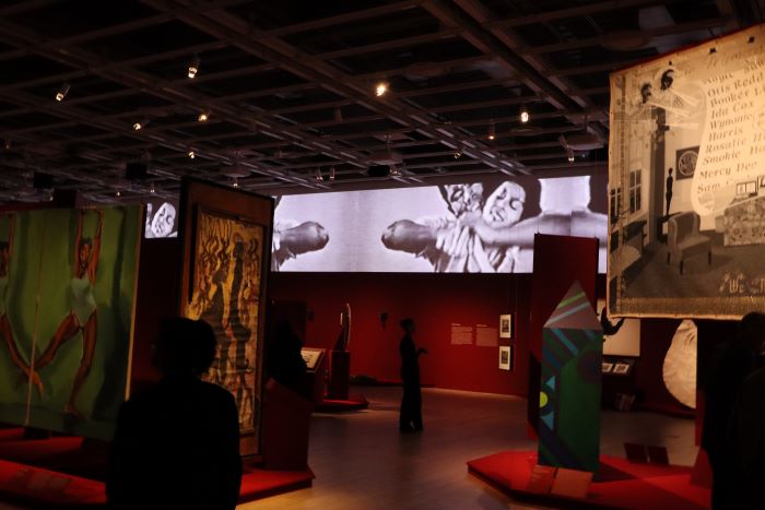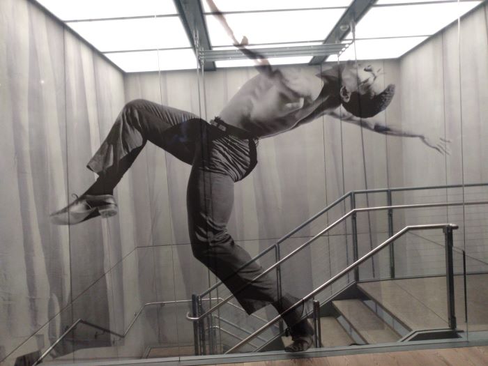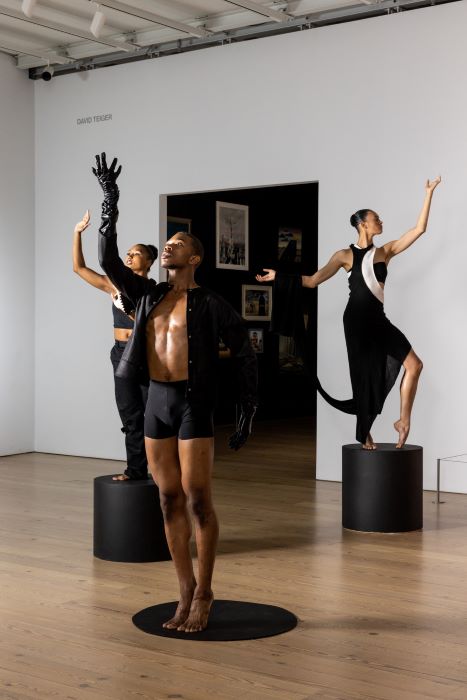 Il y a un espace dédié à l'association d'Ailey avec le théâtre – notant que pendant ses premiers jours à New York, il a suivi des cours avec Stella Adler et est apparu dans des productions emblématiques telles que Appelez-moi par mon vrai nom (1961) et Tigre Tigre Brûlant Brillant (1962), en plus d'être chorégraphe invité pour la première du Metropolitan Opera de Antoine et Cléopâtre au Lincoln Center (1966) – ainsi que ses liens avec des artistes majeurs de la Renaissance de Harlem comme Langston Hughes, James Baldwin de la génération suivante (né à Harlem à cette époque) et la légende du jazz Duke Ellington. On y trouve également une série de photos d'Ailey au fil des ans prises par le photographe de portrait Carl van Vechten (un mécène de la Renaissance de Harlem), et un espace décoré d'affiches de certains des nombreux spectacles d'Ailey, avec une vidéo documentant un total stupéfiant de 4 122 concerts chorégraphiés par lui et d'autres.