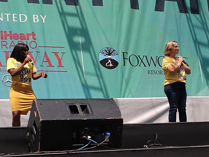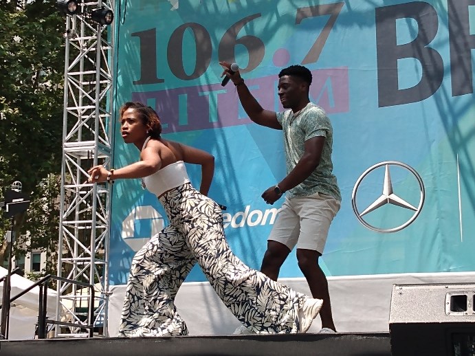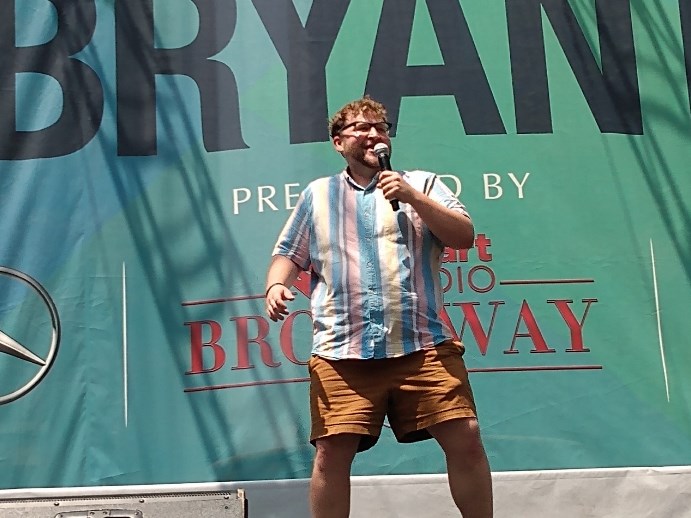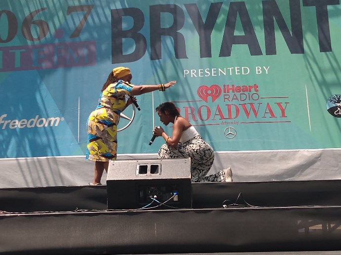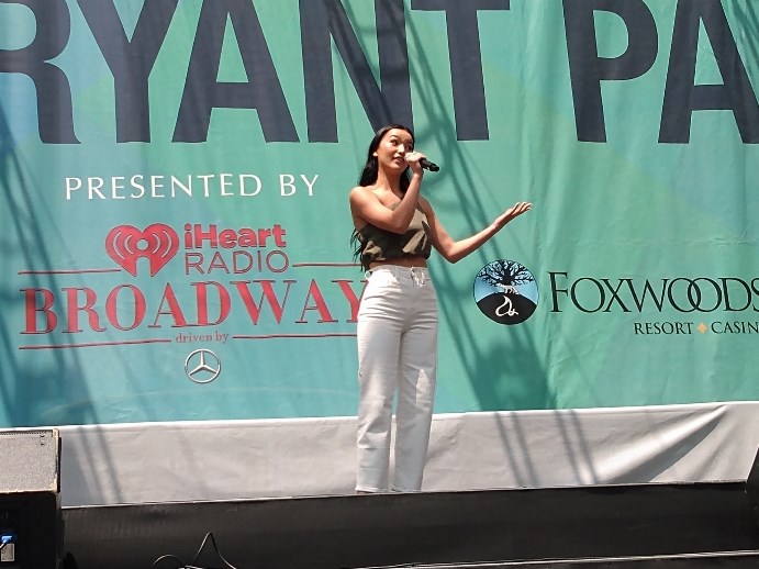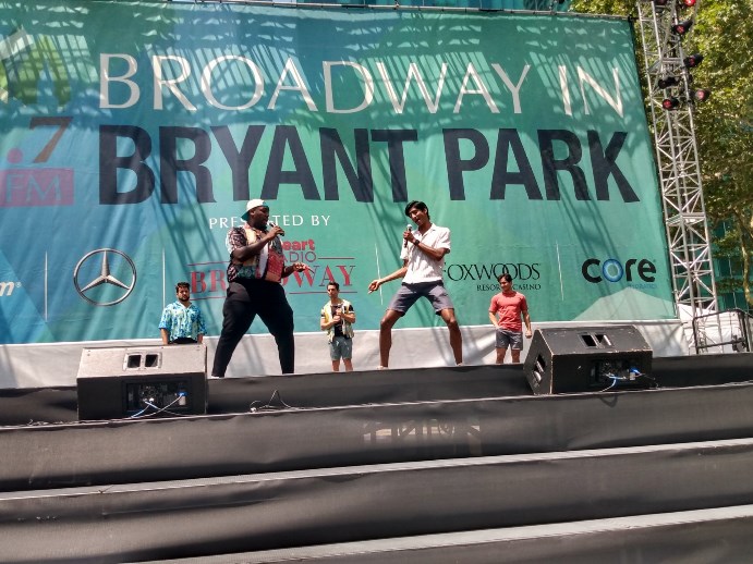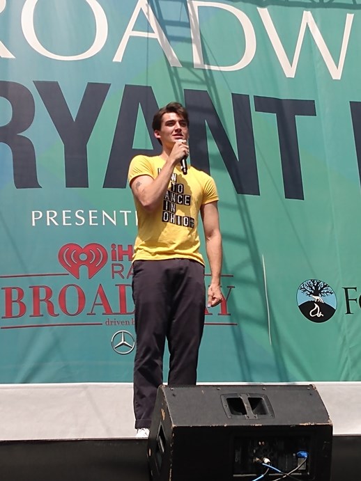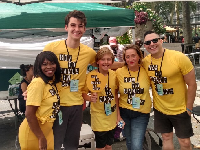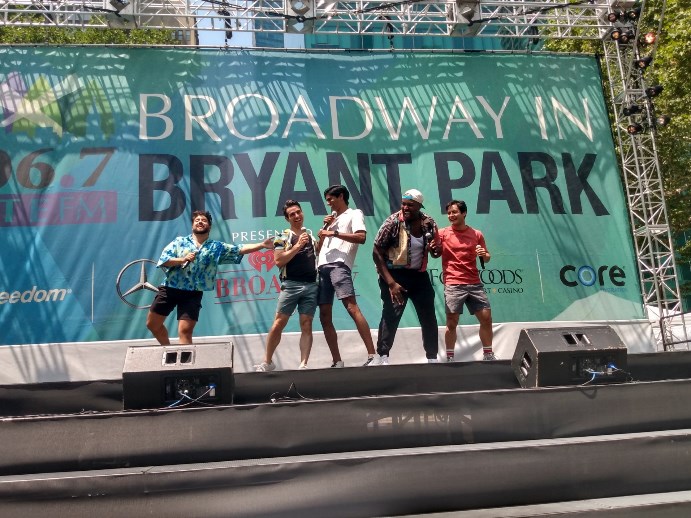 Les représentant sur scène à Bryant Park – bien que de nombreux membres de la distribution et de l’équipe étaient là dans les coulisses, distribuant des souvenirs aux fans lors de la chaude journée d’été, parlant à la foule et à la presse, et soutenant leurs camarades de distribution – étaient Cearsy et Burton avec leur duo à succès sur « Getting Ready for the Dance » et Pearce avec une performance stellaire de « Building Momentum », qui avait tout le monde applaudi et attend avec impatience les débuts à Broadway de ce jeune artiste talentueux et cette nouvelle comédie musicale importante à l’automne.