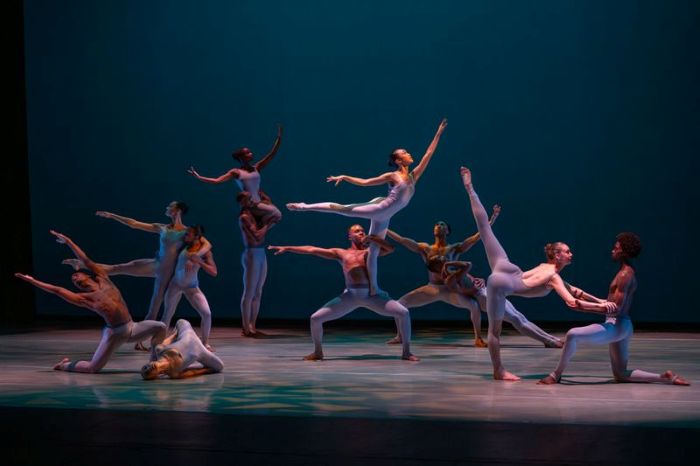 Une collection de Ailey Faits saillants Suit, avec des extraits de trois œuvres classiques chorégraphiées par le fondateur de la société entre 1958-1972: Suite de blues; L'aloux ascendante; et Ruisseaux. Ensemble, ils affichent le tableau distinctif et se mélangent dans son travail qui a fait de lui une icône de la danse américaine. Ils vont de la révision des souvenirs de son enfance au sud en disant des segments de Suite de blues (Créé en 1958, quand il avait 27 ans, lançant son théâtre de danse américain), avec les danseurs Xhosa Scott, Kamani Abu, Xavier Logan, Darion Turner et Alfred L. Jordan II Mean Ol 'Frisco et Jordyn White, Carley Brooks et Jennifer M. Gerken Maison du soleil levantRestaté par Chaya et sur le blues traditionnel, les sons des trains et les cloches de l'église, à travers un long samedi soir à grédite avant l'appel à l'église le dimanche matin, avec un éclairage indicatif par Spence (de l'original de Nicola Cernovitch); à la fusion romantique et lyrique du ballet avec la danse moderne L'aloux ascendanteaffichant les talents de Kiri Moore et Xhosa Scott dans les deux idioms, récompensé avec le «Romance pour le violon et l'orchestre» de Ralph Vaughan Williams, tel que restauré par Roxas-Dobrish, en costumes de Bea Feitler et Lighting by Spence; à l'abstraction formelle non narrative de Ruisseauxà nouveau restauré par Roxas-Dobrish à trois mouvements de la percussion de Miloslav Kabelac «Huit inventions, opus 45» – Scherzointerprété par Alfred L. Jordan II et Xavier Logan, Lamentoso avec Jordyn White, et Diabolico avec la société, dans les costumes d'A. Christina Giannini et l'éclairage par Spence – inspiré par les sentiments suscités et parallèles aux vitesses et aux sensations changeantes des plans d'eau, dans de superbes solos, des duos et une chorégraphie de groupe.