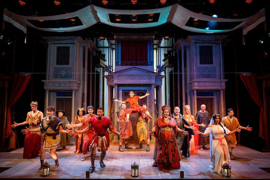 Ensemble à part entière, Hysterium de Mike Millan complète ce fabuleux casting avec l'humour anxieux et inquiet d'un imbécile shakespearien. Irrévérencieux et performatif, Millan joue Hysterium à travers le quatrième mur et directement dans nos cœurs. S’il y a jamais eu une raison pour que Sondheim revienne, c’est pour écrire à Millan une suite d’Hysterium.