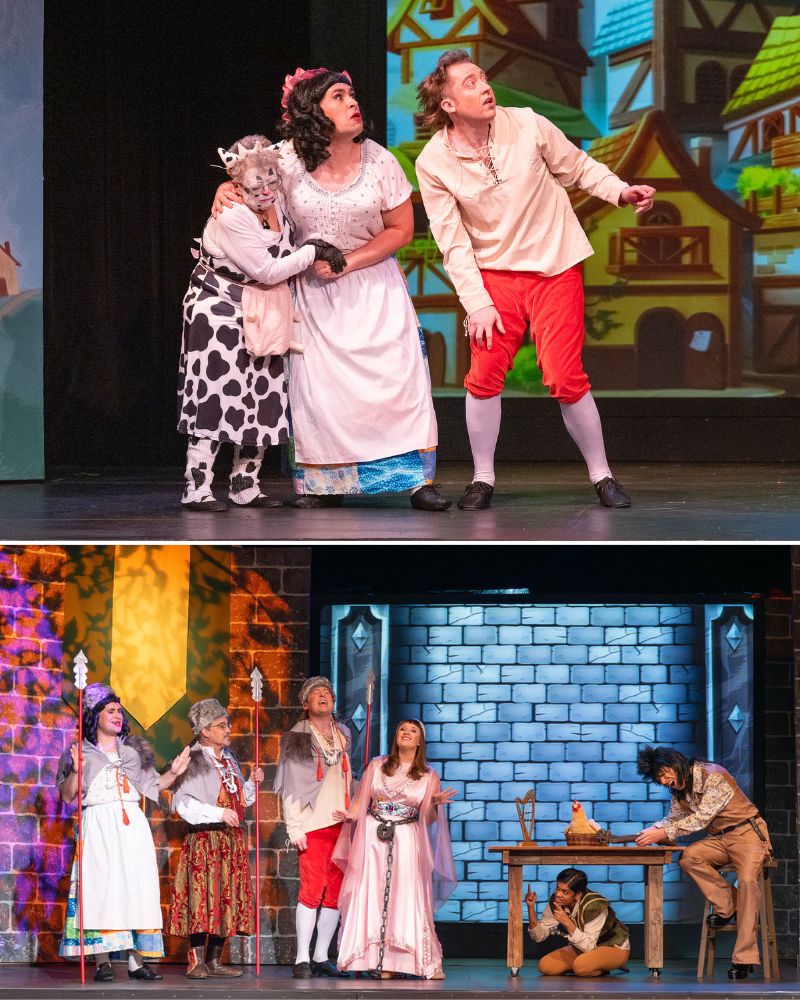 Tous les éléments requis du panto sont ici. Le principal Boy-slash-Hero, généralement joué par une jeune femme (un Niranjali Amerasinghe engageant et enthousiaste dans le rôle de Jack), la Dame, généralement jouée par un homme (un Jonathan Kilgore aux gros seins dans le rôle de la mère de Jack), la Bonne La fée (Rachel Schlaff), le méchant (Ian Swank dans le rôle du géant, aidé d'Amanda Dullin-Jones dans le rôle de son acolyte Slimeball), la principale fille (Abigail Mitchell dans le rôle de la princesse) Demelza), l'animal requis (Pauline Griller-Mitchell, pair de BP, comme les deux extrémités de la vache pantomime), le roi (Robert Teachout), Simple Simon (Richard Jacobson) et un ensemble de pièces de support. Puisqu'il s'agit d'une vitrine communautaire, l'ensemble compte une vingtaine d'artistes de tous âges, ainsi que des musiciens.