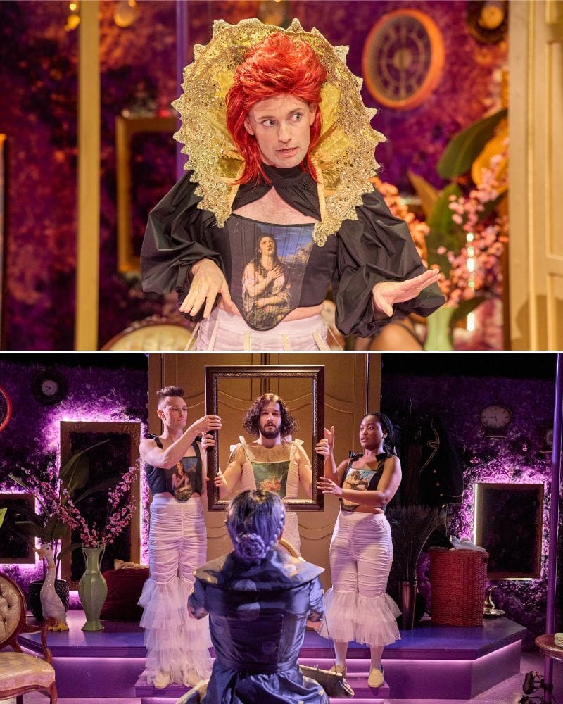 Au début de la pièce, l’adolescent Orlando (Mary Myers) impressionne la reine Elizabeth I, interprétée par Alan Naylor, et devient page à la cour de la reine. Ils forment un lien profond, mais bientôt le jeune Orlando est tenté par d’autres relations amoureuses, comme peut l’être la jeunesse. Myers dans le rôle d’Orlando est attachant, bien qu’impressionnable et plein de passion, ce qui permet de pardonner facilement sa faillibilité et d’enraciner son voyage. La reine Elizabeth I de Naylor est tout à fait royale, imposante et étonnamment tendre, et le voir lui et le chœur passer d’un personnage à l’autre est un délice.