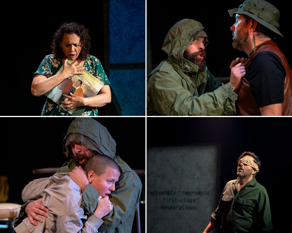Plus tard, dans la conception de costumes variés et efficaces de Kathryn Lara Kawecki, ses yeux sont couverts d'une sorte de sweat à capuche kaki, à la fois le déguisant des autres et protégeant ses yeux d'un paysage humain inconnu. Ce n'est que dans la scène finale que tout son visage et sa forme sont visibles et entiers, alors qu'il rentre enfin et pleinement chez lui.