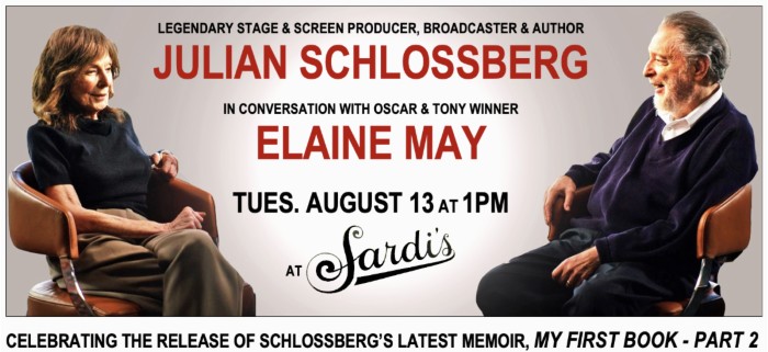 Lors d'un événement de sortie privé à New York au Sardi's le mardi 13 août, à partir de 13 heures, le producteur de théâtre et d'écran de longue date, diffuseur, podcasteur et auteur Julian Schlossberg a lancé le deuxième volume de ses mémoires, Mon premier livre – Partie 2, La vie d’un producteur continueune suite à Essaie de ne pas m'en vouloirpublié en 2023. Rejoint par Elaine May, lauréate d'un Tony et d'un Oscar, et par l'invitée spéciale Renée Taylor, l'événement a vu Schlossberg lire de brefs extraits du livre et en discuter avec May, qui a écrit l'avant-propos, a admis qu'elle était nerveuse à l'idée de faire l'interview, a encouragé tout le monde à acheter le livre, puis a transmis les questions à Schlossberg et au public.