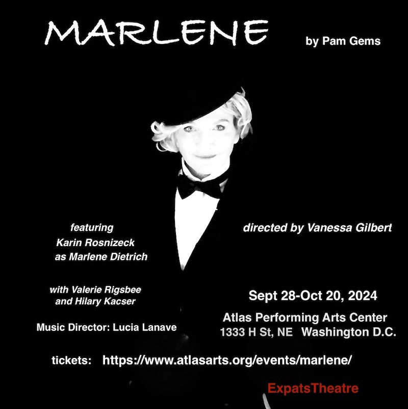 Le Théâtre ExPats est ravi de présenter la production scénique en direct de Marlèneune pièce de théâtre avec une musique de la dramaturge britannique Pam Gems. Marlène est réalisé par Vanessa Gilbert et s'ouvre Samedi 28 septembre à 19h30 courir à travers 20 octobre à Centre des arts de la scène AtlasLaboratoire 2, 1333 H St NE, Washington, DC.