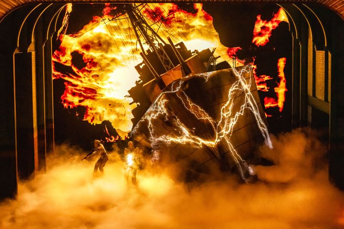 Si (comme moi), vous n'avez pas vu l'original (se déroulant dans les années 1980, dans la ville fictive de Hawkins, dans l'Indiana, où les résidents sont menacés par la hausse – une dimension alternative terrifiante avec une passerelle de terre ouverte par une installation d'expérimentation humaine à proximité), le spectacle actuel, par Kate Trefry (un écrivain de la série télévisée, avec les duffres et Jack Thorne), conçus pour les fans et les fans et les duffres et les Jack Thorne),, conçus pour les fans et les nouveautés, As As As As As a Histoire d'origine autonome et spectacle immersive, rempli d'illusions futuristes, d'effets visuels et de projections vidéo (par Jamie Harrison, Chris Fisher et 59), de flashs dramatiques et électrisants de lumière (par Jon Clark), enveloppant des rafales de fumée, de la brume et des confetti, et des claps bruyants de sons stéréo-streams (par Paul Arditti).