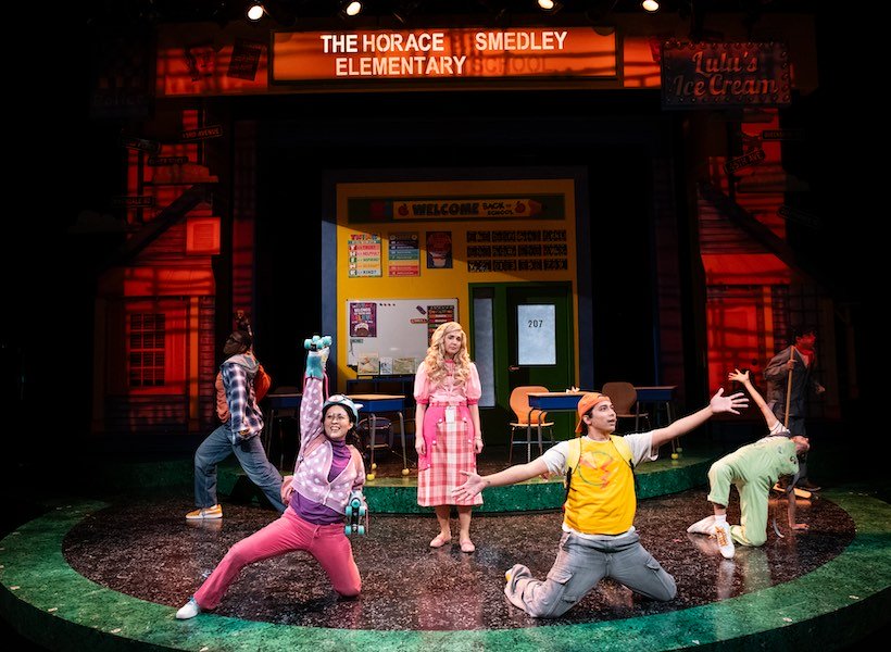 L’original Imagination Stage est rempli de musique, de danse et de magie théâtrale. Les enfants de la chambre 207 sont parés de couleurs vives et se rassemblent lentement à mesure que le règne de Miss Swamp se prolonge. Chaque enfant dispose de son propre moyen de transport à roues pour aller et revenir de l'école, pour le plus grand plaisir du public (même si mon enfant de six ans a été particulièrement inquiet lorsque Alison, épuisée, a commencé à faire du roller « trop près » du bord de la scène). Les lumières de Max Doolittle apportent du drame et de la concentration sur la scène aux bons moments, tandis que le décor aux multiples facettes de Milagros Ponce de Leon comporte son propre sac d'astuces, passant facilement d'un endroit à l'autre. Les costumes de Jeannette Christensen contribuent à raconter l'histoire de chaque enfant, et une attention particulière doit être accordée à ses propres transformations magiques. De la Miss Nelson vêtue de rose à la Barbie à la sorcière Miss Swamp au thème noir et vert (toutes deux jouées par l'inimitable Emily Kester), en passant par les costumes triples du concierge de Jimmy Mavrikes, du principal Blandford et du détective McSmogg. , les créations impressionnantes de Christensen combinées aux talents d'acteur de Kester et Mavrikes pour tromper même les miennes. Mlle Nelson-fille obsédée.