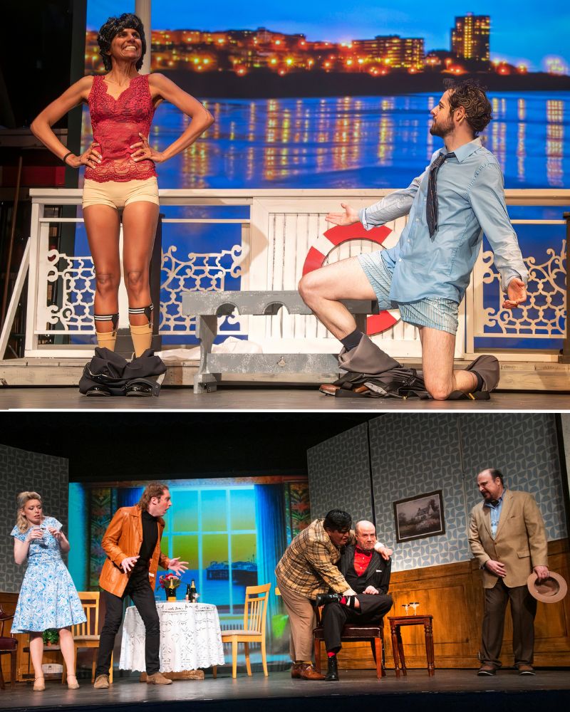 Les costumes de Patricia Kratzer évoquent de manière experte Brighton de l'ère des Beatles, avec des jupes crayon et des twinsets de pull accentuant les actifs des actrices et les cheveux de ruche mile-haut (perruques de McKenna Kelley). En mettant la scène, les localités sont présentées par des projections (conçues par Matt Mills) sur un écran de tissu à l'arrière de la scène – à un moment donné, lorsque le tissu s'articule derrière une projection d'un bord de bord, il avait presque l'air animé. Bien que probablement accidentel, c'était très efficace. Dave signifie « Ensemble, avec une conception technique de Mike Lewis, est extrêmement élaboré, passant de l'intérieur d'un appartement à différents lieux extérieurs, y compris un assez beau pont. Malheureusement, cela conduit à des changements de set extrêmement longs, bien qu'il soit prêt à faire de la musique des années 60 de la production originale (conception sonore de Sarah Katz) – au point où le soir d'ouverture, le public a commencé à rire des difficultés de la vaillante équipe de scène. Au moins, les parieurs les ont applaudi à la fin, mais nous espérons que le rythme reprend pendant la course.