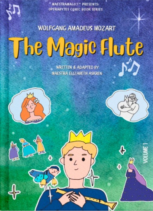 La flûte magique – pour le premier volume du nouveau Opérabytets série de bandes dessinées de Maestramagique!– Une émission de divertissement éducative pour enfants mixtes, créée et animée par la chef d'orchestre Elizabeth Askren au printemps 2020, pendant les premiers jours de la pandémie covide – Maestra Askren a écrit une adaptation adaptée aux enfants du conte de fées de Mozart 1791 Chanter Opéra sur le voyage enchanté du prince Tamino à travers la magie, les monstres et la recherche de l'amour et le courage de surmonter les obstacles. L'histoire abrégée en deux actes est racontée dans le jargon juvénile actuel avec des As humoristiques («C'est un drôle de nom!») Qui le rend amusant, relatable et facile à suivre, précédé d'une introduction (ou «oh! Verture») donnant le contexte du travail et du sens des termes opératoires.