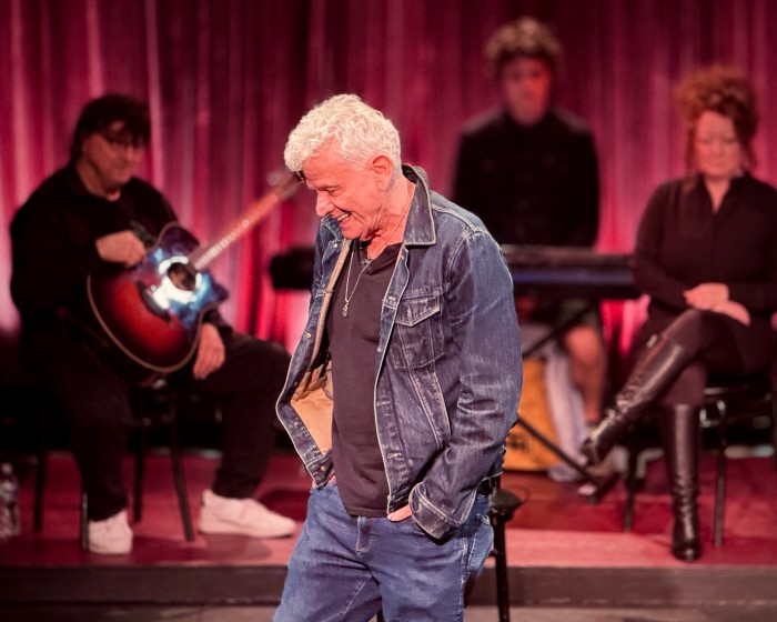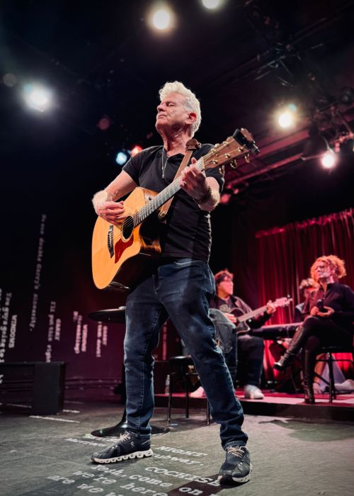 Activement réalisé par Joe Danisi et soutenu par son groupe folk-rock folk-rock significativement nommé Heartbreak Waits – Directeur musical Tony Daniels sur la guitare principale, Cedric Allen Hills sur le clavier, les percussions et les voix, et Annie McGovern au chant – les attentes expressives, maintenant 21 ans sobres, se déplacent énergiquement dans la scène noire intime, parlant, en chantant, en jouant de la guitare et de l'harmonica, de la séance et du genou, sautant autour et de la danse, sur un set (par Elle Kunnos de vos Avec une table et une chaise centrales de cabaret, le groupe directement derrière, des verres et des bouteilles de vin et d'alcool, un rideau en haut et des citations des œuvres dans lesquelles il est apparu en lettres blanches sur les parois et le sol latéraux. Tout est présenté dans l'adresse directe du public, avec des émotions débridées, l'humour auto-déprécié et un contact visuel direct, ne manquant jamais à nous attirer dans ses expériences réelles et ses sentiments d'exaltation, de douleur, de recherche d'âme, d'espoir et de guérison, améliorée par l'éclairage (par John Narun) qui change avec l'ambiance.