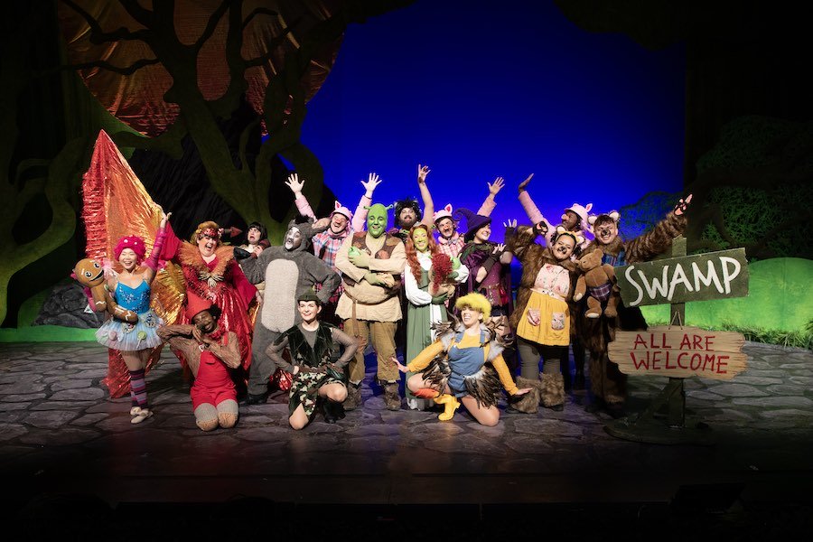 Selon Playbill, Shrek la comédie musicaleLa tournée nationale actuelle de est une réécriture de la production de Broadway de 2008 par ses créateurs originaux, la compositrice Jeanine Tesori et le parolier et auteur de livres David Lindsay-Abaire, 16 ans après la première du spectacle à Broadway et avec Brian d'Arcy James et Sutton Foster dans les rôles de Shrek et Fiona. Après sa production à Broadway, la comédie musicale a fait l'objet de deux tournées nationales Equity et de trois tournées nationales non Equity, dont celle-ci.