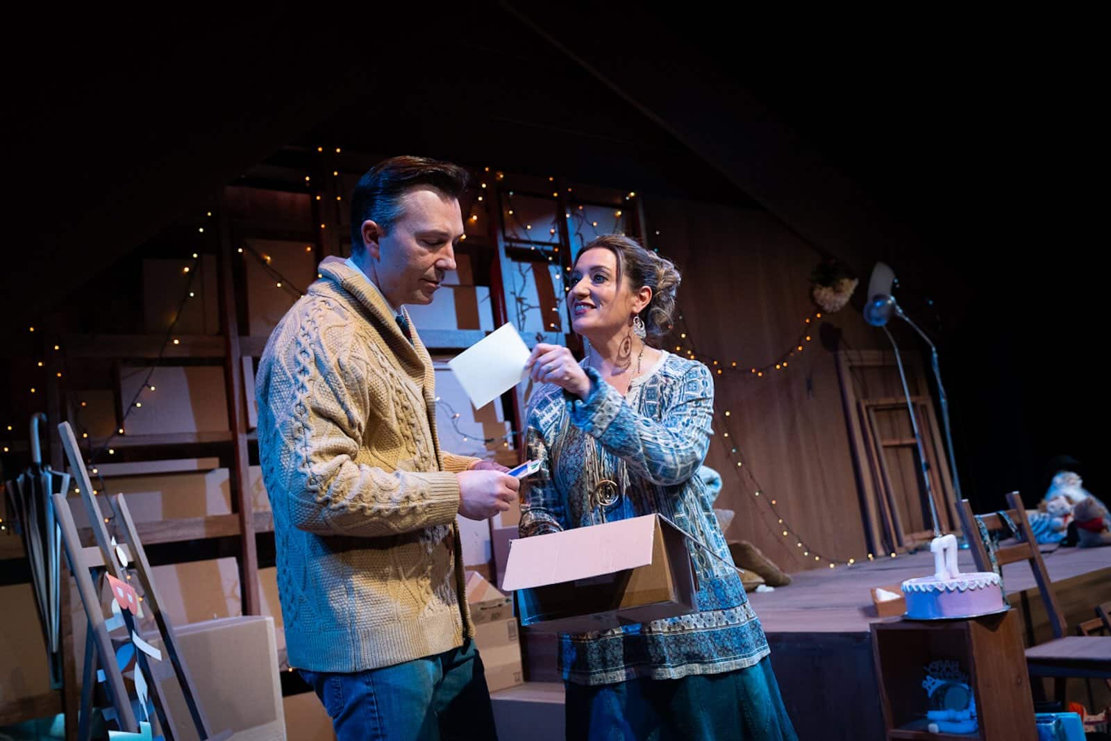 Alors que les lumières s’allument dans un grenier impressionniste, Sue fait sa valise, se préparant à quitter son mari de longue date, Dan. En faisant ses valises, elle prend un album et commence ainsi son voyage de souvenirs, à la fois doux et amers, de son temps avec Dan, depuis leur première rencontre lorsqu’ils étaient enfants. Dans une idée astucieuse, les versions les plus jeunes et les jeunes adultes de Sue et Dan sont interprétées par deux couples d’interprètes supplémentaires. Sue et Dan, plus âgés, non seulement revivent leurs bons et mauvais moments ensemble, mais voient également ces moments se reproduire. Vont-ils se séparer d’ici la fin ? Ou retrouveront-ils une lueur d’espoir en cours de route ? Ce sont les questions que Scrapbooks fait remonter à la surface, et il le fait avec brio.
