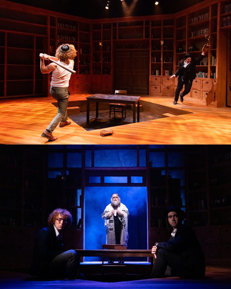 La performance de Sasha Olinick dans le rôle du rabbin Saunders a été moins qu’impressionnante. Son personnage a un passé torturé : sa première femme et son fils assassinés par des cosaques en Russie. Il est émotionnellement retenu et tyrannique dans ses silences. Cependant, la performance d’Olinick a trébuché, elle était celle d’un petit homme et non d’un grand homme, en particulier dans les moments culminants meurtriers et plus grands que nature. En revanche, Zach Brewster-Geisz dans le rôle du savant David Malter a été joué avec douleur, avec une tendresse et une fragilité associées à la rigueur intellectuelle exigée par son rôle paternel.