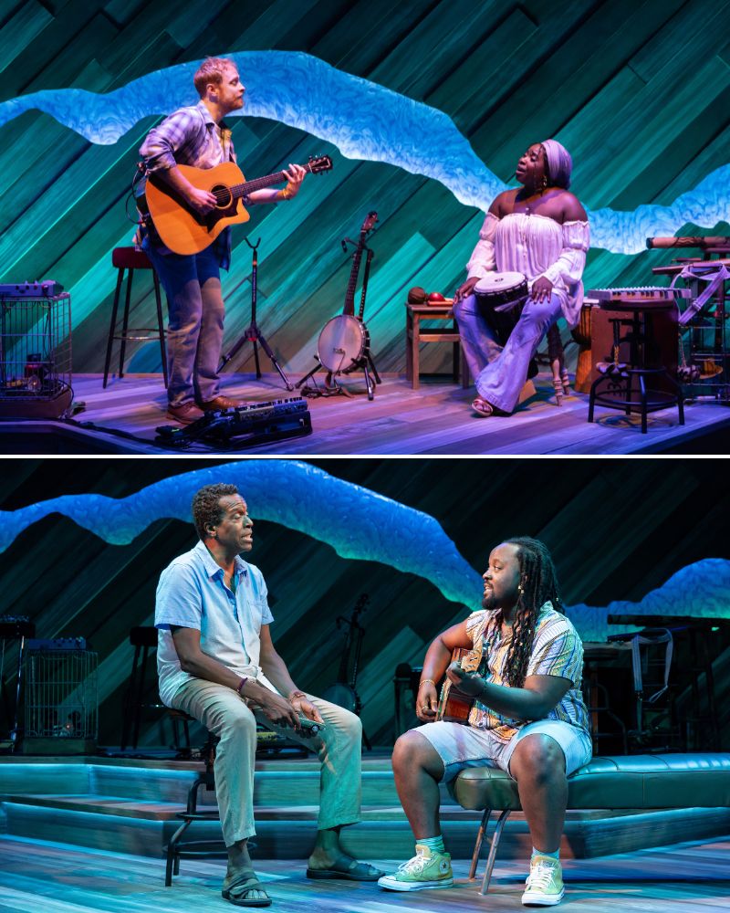Mis en scène comme les concerts de musique folk dans ces arrière-bars que Jonah (proteste) n'aime pas, la conception scénique de Tony Cisek est une simple plate-forme surélevée, un quatrième mur dans une histoire en rond. Mais pour moi, l’élément marquant était la rivière magnifiquement incrustée et éclairée qui traçait le haut des murs de l’espace. Aussi vivant que l’histoire et aussi fluide que la musique, c’était un fil conducteur littéral et astucieux du déroulement de l’histoire. Chorégraphie de Dane Figueroa Edidi, direction musicale de Rob Morrison, conception des costumes de Moyenda Kulemeka, conception de l'éclairage de Harold F. Burgess II et conception sonore d'Eric Norris, le tout doucement superposé les uns sur les autres, sans attirer l'attention mais en améliorant le monde. se construit sur scène et dans l’esprit du public.