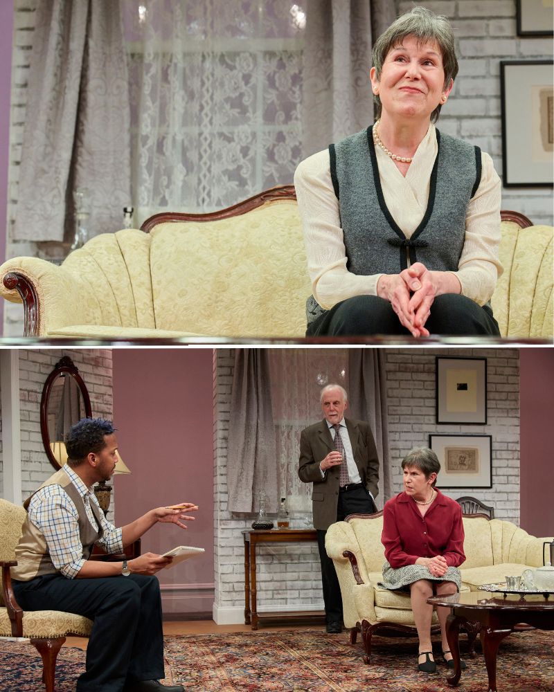 L'équipe de conception dédiée a construit cette vie non construite : le scénographe Joseph B. Musumeci Jr., la conceptrice d'éclairage en résidence Marianne Meadows, la conceptrice de costumes en résidence Sigrid Johannesdottir, le concepteur sonore David Bryan Jackson et la directrice de scène de production Elaine Randolph. La scénographie en couches a capturé la vie autrefois primitive et convenable d'Agatha dans des motifs floraux et des meubles anciens, contrastant fortement avec l'art moderne préféré par son défunt mari. La conception de l’éclairage a intelligemment utilisé un subtil éclairage bleu le long du mur du fond pour donner le ton visuel à la curiosité, à l’imagination, à la liberté et aux dilemmes moraux. Et j'ai aussi beaucoup apprécié la « chorégraphie » des machinistes — Noah Wesley et Luca Maggs — avec les acteurs, quittant la scène ou prenant place. Qu'il s'agisse de remettre à Agatha un bibelot en argent essentiel à la scène suivante, de tenir une porte ouverte pour que Scott puisse la traverser ou de retirer un tableau alors qu'Agatha était assise dans les changements de scène sombres, cette production a intentionnellement joué sur les interactions dans les coulisses et sur le devant de la scène et a fait de tout un C'est une partie active de l'histoire racontée, et pas seulement des ombres sans visage utilisées pour passer à la scène suivante.