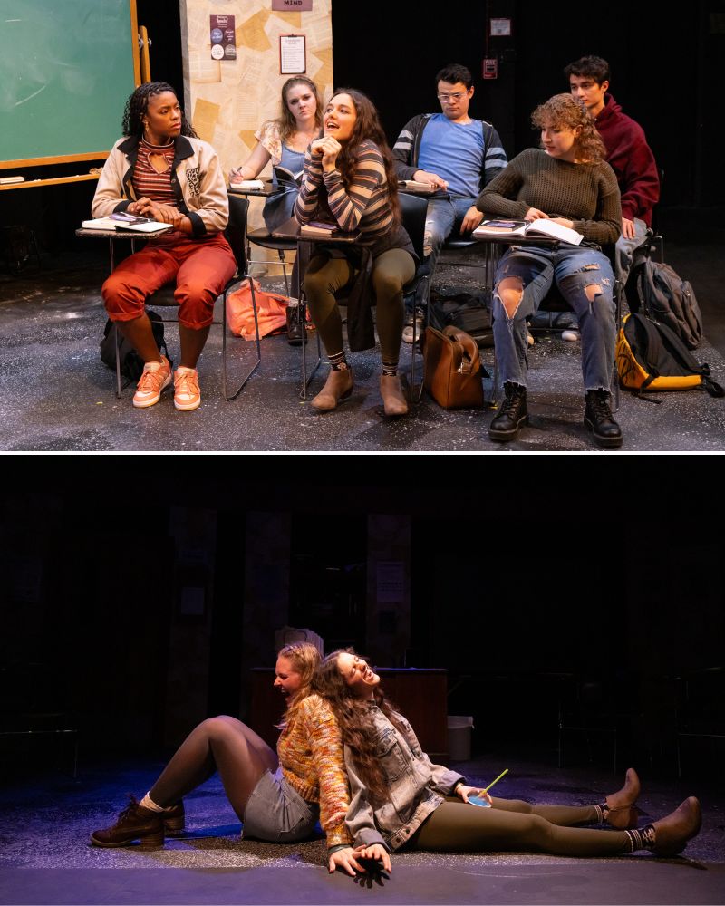 C'est un défi de taille de s'attaquer à cette pièce après que de jeunes artistes locaux ont peut-être vu la production du Studio Theatre de 2022 et que les élèves l'ont peut-être lue en classe, dans une école avec un programme de théâtre comme celui de Catholic. De nombreux moments semblent palpables avec des étudiants proches de l’âge des lycéens, se sentant comme un « studio plus petit » en termes d’intimité et d’échelle. La réalisatrice Meghan Behm fait un travail formidable dans cette version en ajoutant un ensemble pour agrandir la salle de classe (un choix approuvé par Kimberly Belflower dans le scénario, ce qui est logique dans un cadre universitaire où tout cet ensemble étudie les pistes principales), tout en garantissant que chacun la scène avec le casting principal touche les accords prévus. Les transitions se déroulent rapidement, rendant chaque nouvelle journée à l'école claire.